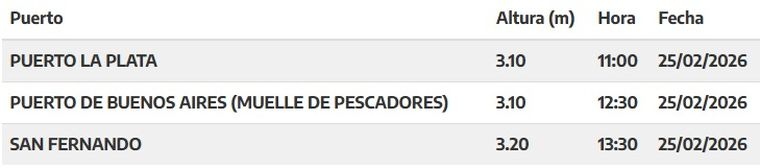 El organismo, dependiente del Ministerio de Defensa de la Nación, anunció que este miércoles habrá una fuerte crecida del Río de la Plata que superará los 3 metros en tres puntos clave de medición: Puerto La Plata, Puerto de Buenos Aires y San Fernando.