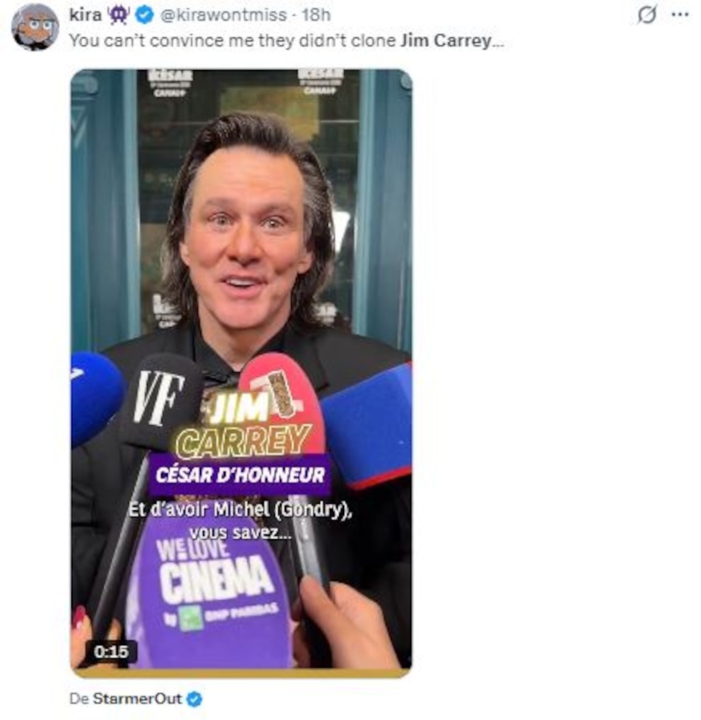 El rostro “irreconocible” de Jim Carrey en los Premios César desata teorías en redes sociales