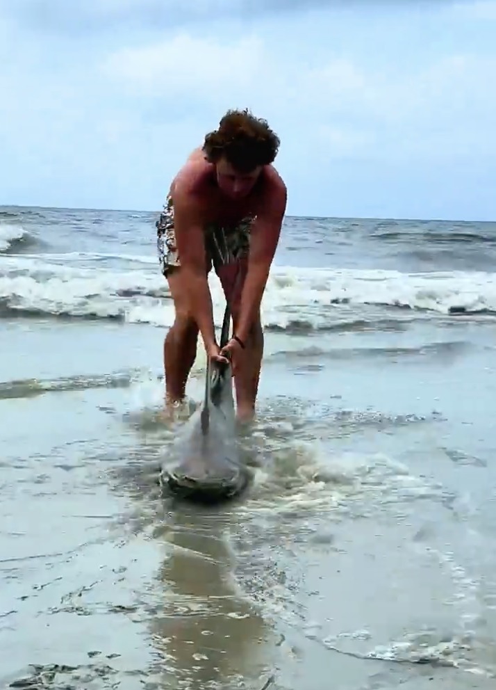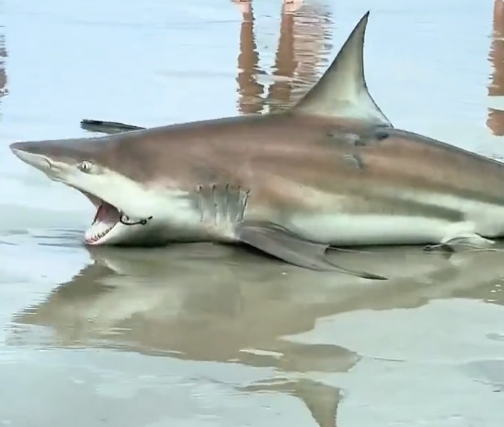 Un joven no se quedó indiferente al ver un tiburón varado en la arena, con un anzuelo clavado en la mandíbula.