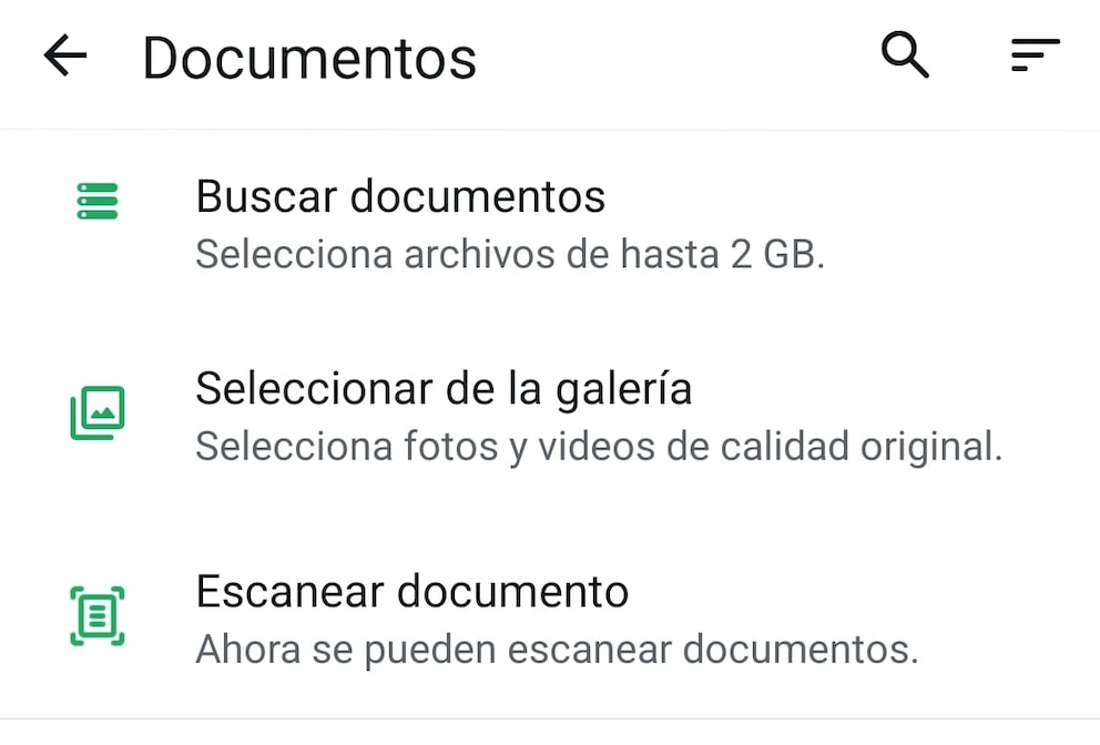 En ese punto aparece la nueva característica: “Escanear documento”, ubicada al final del menú de opciones. Al activar esta función, la cámara del dispositivo se convierte en un escáner con dos modos: automático y manual.