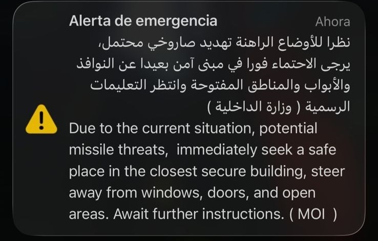 Uno de los aspectos que más impactó en la vida cotidiana es el sistema de alerta ante posibles ataques. “Cuando llegan los ataques nos llega también una alarma al celular”, explicó.