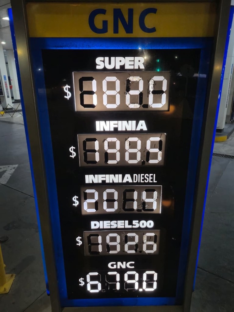 - Nafta Súper: desde $1820.