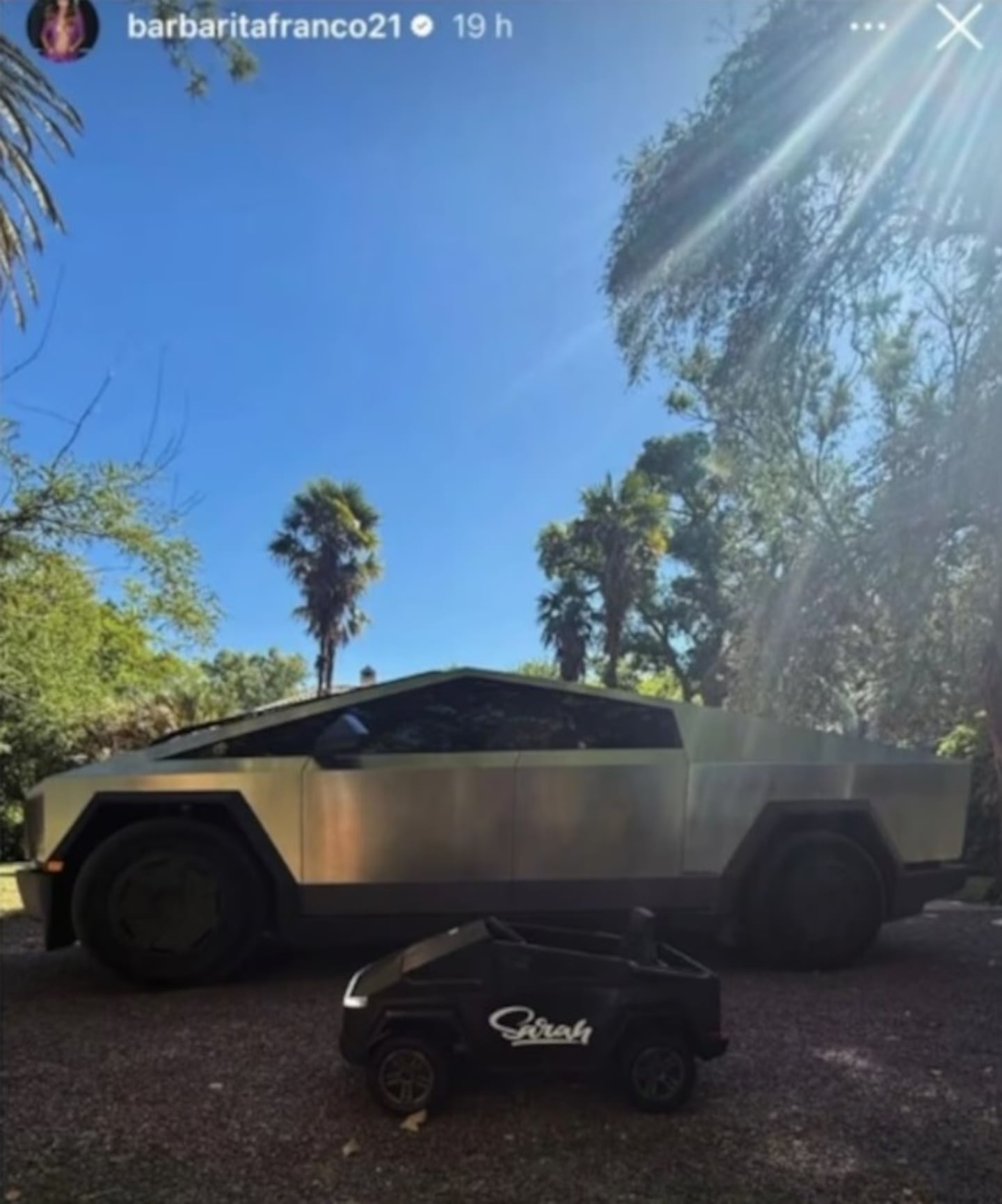 Barby Franco mostró el Tesla Cybertruck que Fernando Burlando le regaló por Navidad, uno de los vehículos más exclusivos que hay en la Argentina. (Foto: Instagram / @barbaritafranco21).