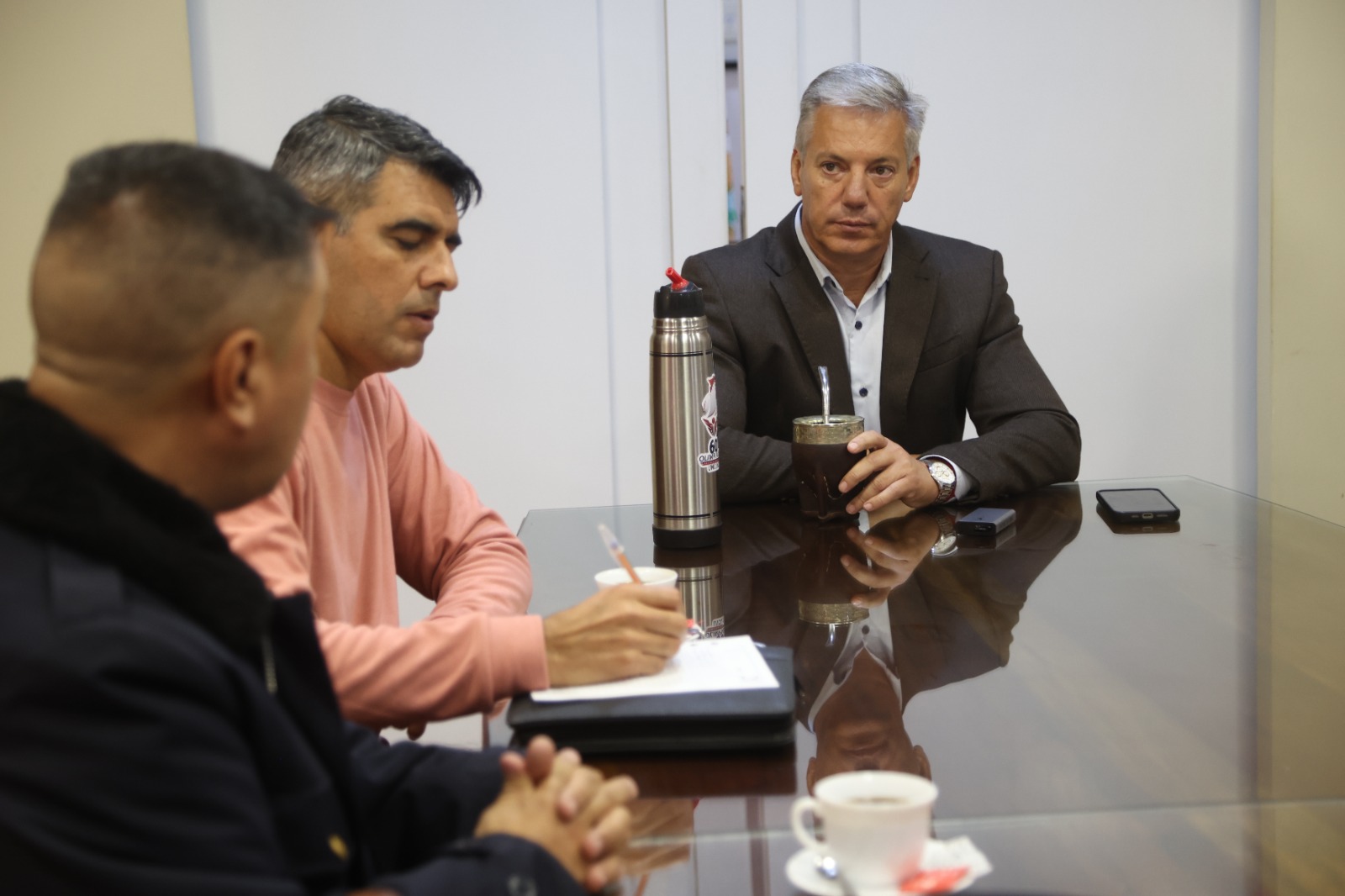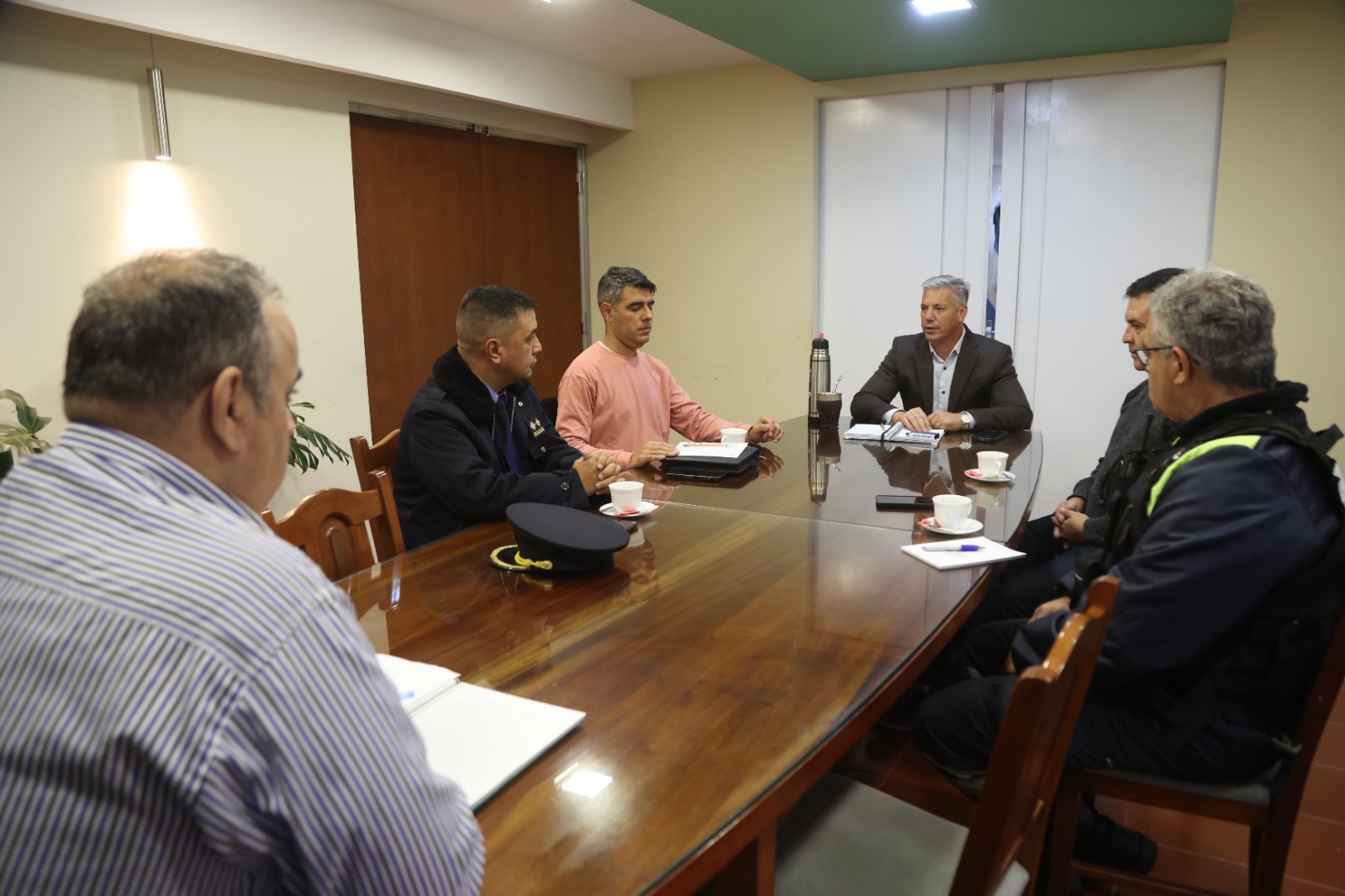 Convocado por el intendente, se realizó esta mañana en la Sala de Intendencia un encuentro de trabajo junto al comisario Fernando Ludueña, jefe de la Policía departamental; al director de la Policía de Tránsito municipal, Luis Alcaino, y al coordinador de Gabinete, Diego Musa.