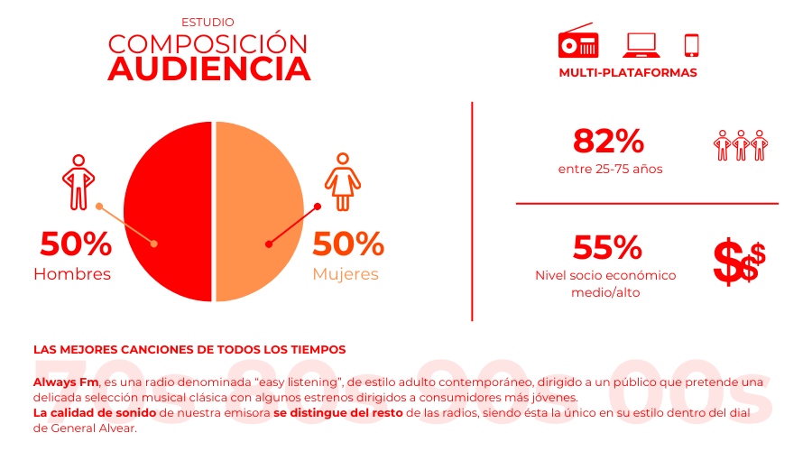 Nacimos el 4 de febrero de 2013. Somos un medio de comunicación de reconocida trayectoria y seriedad en la ciudad de General Alvear. Desde hace más de 10 años, nuestras principales fuentes de información son la radio en frecuencia modulada y la plataforma informativa Info-Always donde se puede estar al día las 24 hs. con todo el panorama local, provincial, nacional e internacional pasando por noticias de último momento, toda la actualidad de espectáculos y música.
