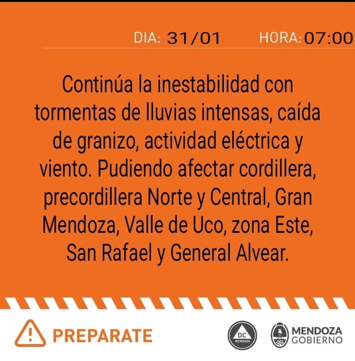Desde la Dirección de Contingencias Climáticas indican que este sábado la jornada estará mayormente nublada y ventosa, con descenso de la temperatura. Se prevén vientos moderados del sector sur, lluvias y tormentas de intensidad moderada a severa, con posibilidad de granizo. En cordillera se esperan precipitaciones. La temperatura máxima será de 29 grados y la mínima de 23.