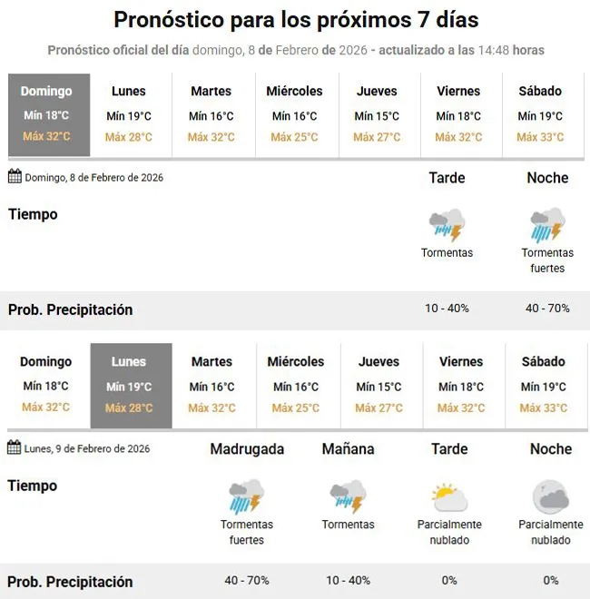 El Servicio Meteorológico Nacional anticipa tormentas con una probabilidad de hasta el 70% para la noche de este domingo y madrugada del lunes.