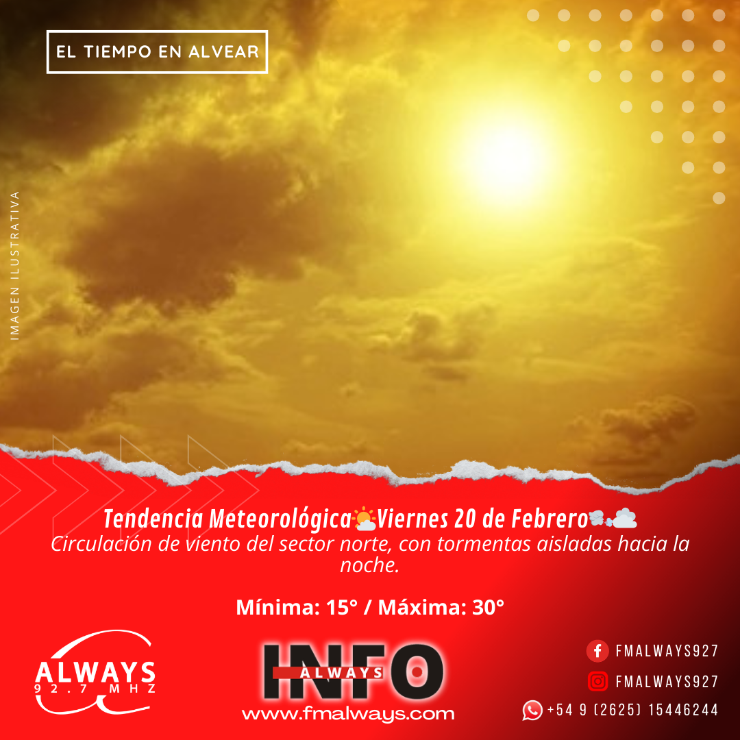 Cómo estará en Alvear? La máxima estará entre 27 y 30 grados.