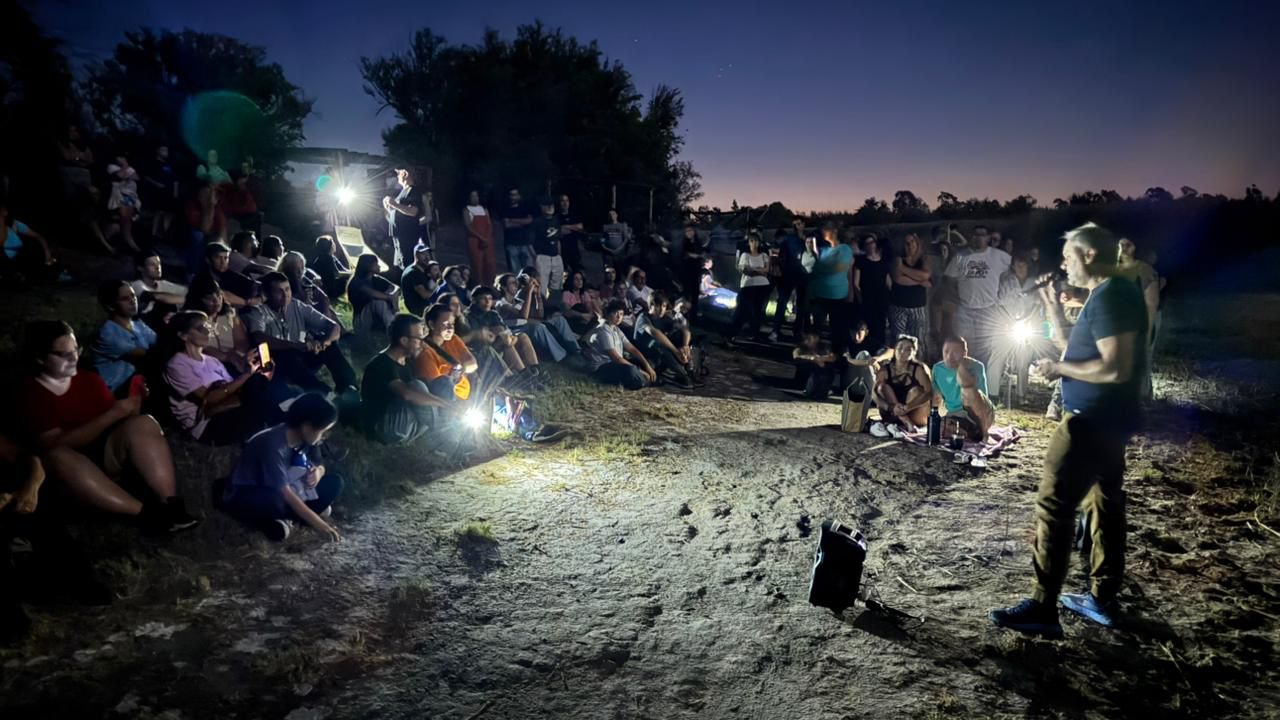 La actividad incluyó una caminata nocturna hasta la laguna, seguida de un fogón con guitarreada en un entorno natural. Durante la jornada, los asistentes compartieron música regional y escucharon relatos de leyendas narrados por Sergio Sendra, en una experiencia pensada para revalorizar el patrimonio ambiental del lugar.