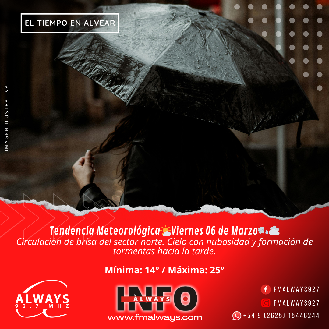 Para el sábado se anticipa un nuevo ascenso de la temperatura, con cielo de nubosidad variable y vientos moderados del noreste. Hacia la noche volverá la inestabilidad y se prevé la formación de tormentas que podrían afectar áreas cultivadas, mientras que en la cordillera persistirán las precipitaciones. La mínima se ubicará en 14° y la máxima llegará a 27°.