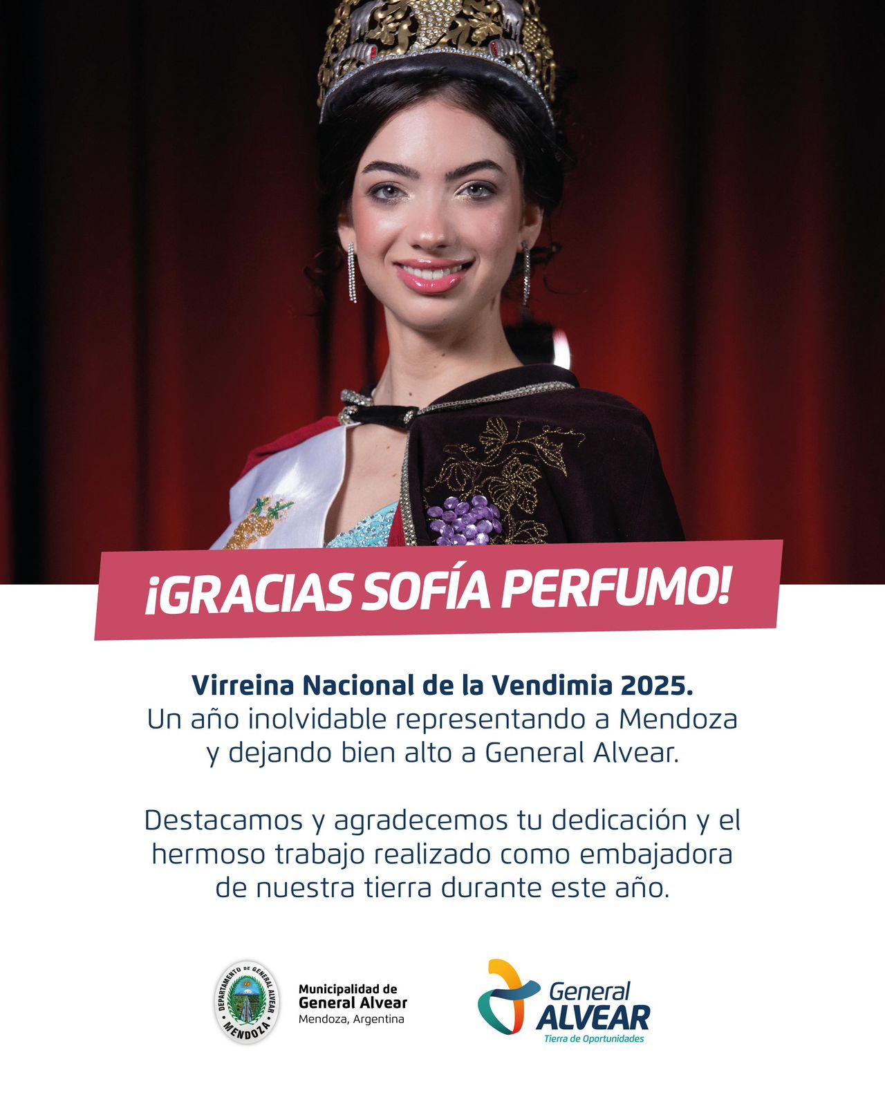 Esta noche finalizó el mandato de Sofía Perfumo como Virreina Nacional de la Vendimia, y desde General Alvear solo quedan palabras de orgullo y gratitud.