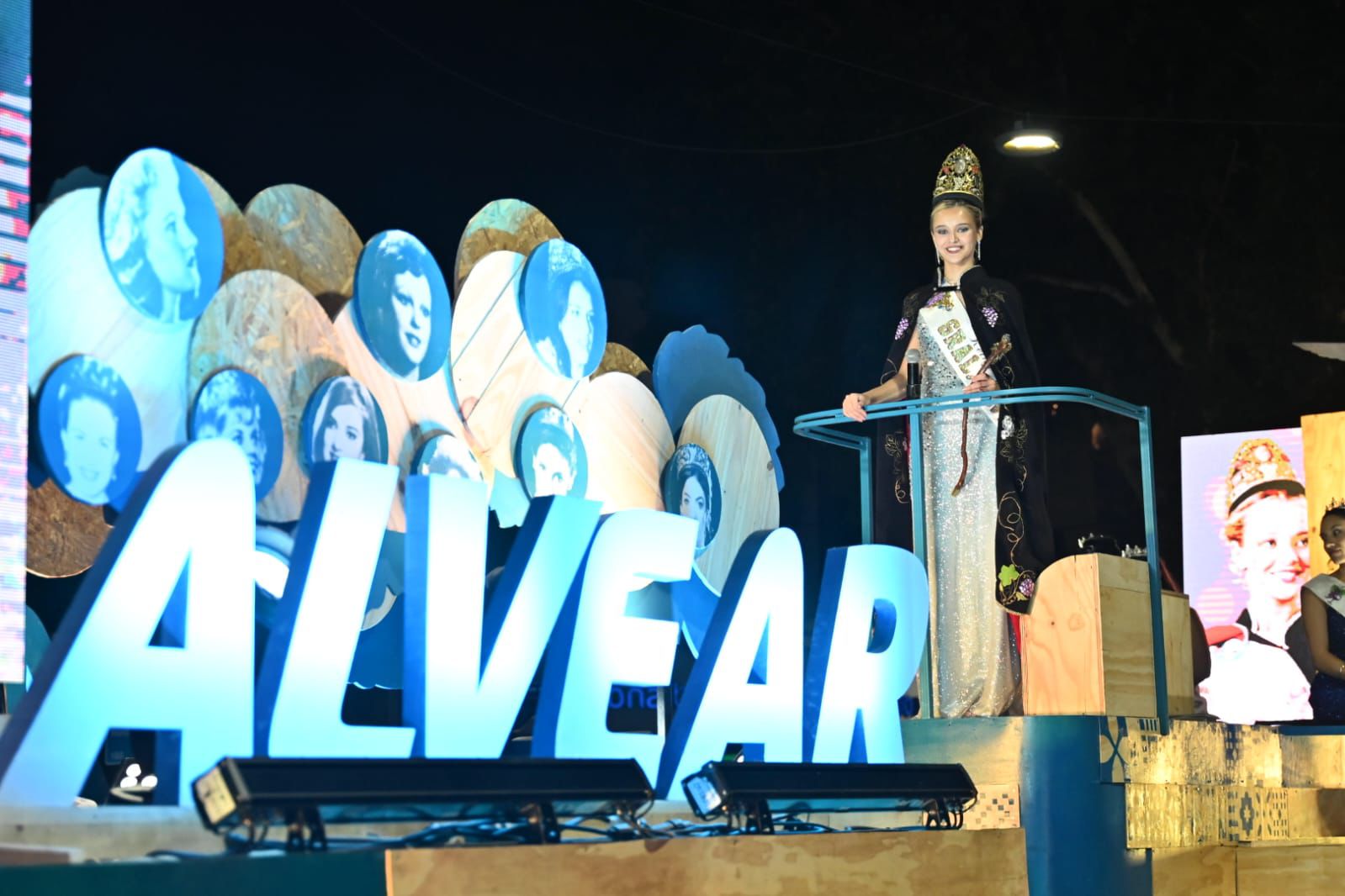 Desde el carro vendimial que representa al departamento, realizado por la Dirección de Turismo, la soberana alvearense saludó al público junto a su corte, en un recorrido que reúne a las candidatas departamentales al cetro nacional de la Vendimia en una de las celebraciones más convocantes de la provincia.