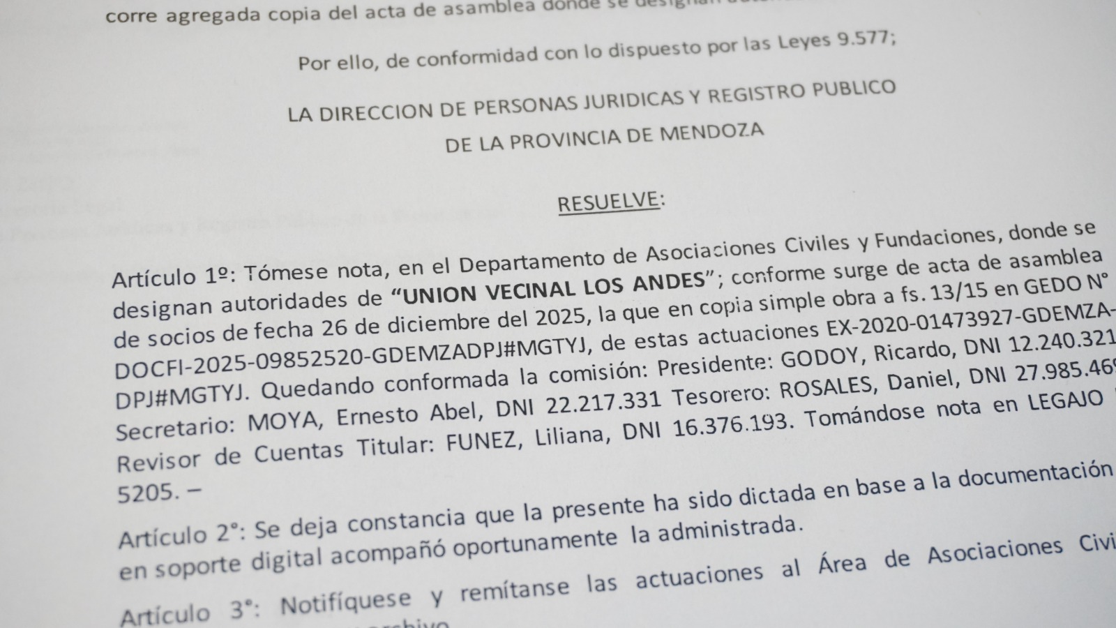 Las entidades que reactivaron su funcionamiento son la Unión Vecinal Los Andes, APPROSUR, el Centro Andaluz, la Unión Vecinal Valentina y la iglesia evangélica Dimensión de Vida. En todos los casos, la normalización fue posible a partir del compromiso de sus integrantes y el acompañamiento del Municipio a través del área de Personería Jurídica.