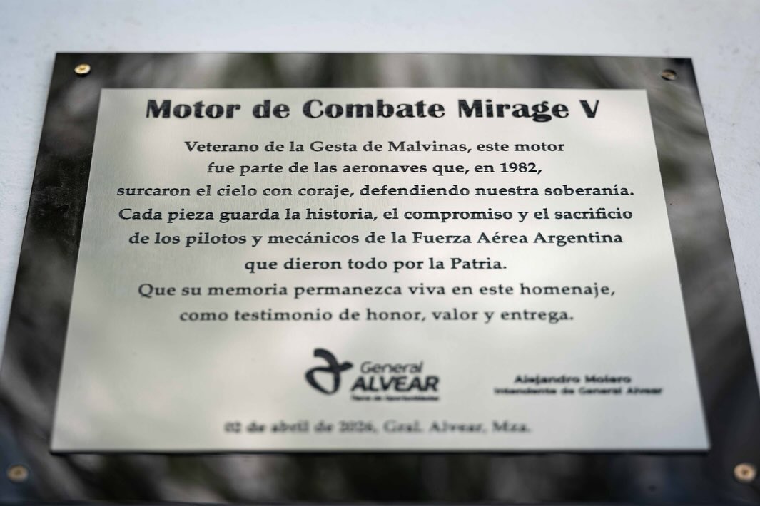 Este 2 de abril quedó marcado por la inauguración de un nuevo símbolo de soberanía en nuestra ciudad: un Motor de Combate Mirage V. Esta pieza histórica, que surcó los cielos en 1982, descansa ahora en #GeneralAlvear como testimonio silencioso del valor, el sacrificio y la entrega de los pilotos y mecánicos de la Fuerza Aérea Argentina