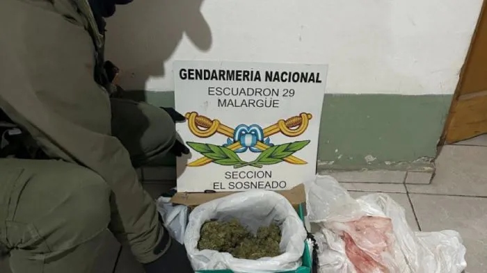 En el puesto de control de El Sosneado, gendarmes del Escuadrón 29 encontraron y secuestraron una encomienda con marihuana que iba en la bodega de un colectivo de pasajeros.