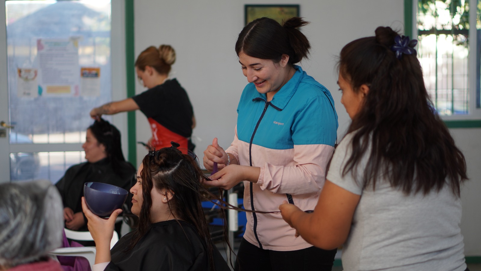 Uno de los talleres con mayor demanda es el de Peluquería de nivel inicial, a cargo de la profesora Magalí. Con una matrícula de 26 alumnos que se reúnen los miércoles, el curso aborda desde tratamientos básicos y nutriciones hasta técnicas complejas de colorimetría y corte.